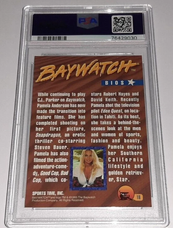 1995 Sports Time Baywatch #18 Pamela Anderson Base Card Graded PSA